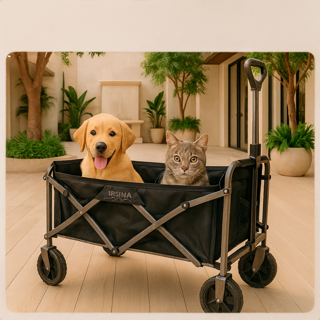 Leve tudo o que precisa com conforto e segurança com o Carrinho Dobrável IRSINA, ideal para camping, praia, piqueniques, viagens ou até mesmo para carregar compras pesadas.