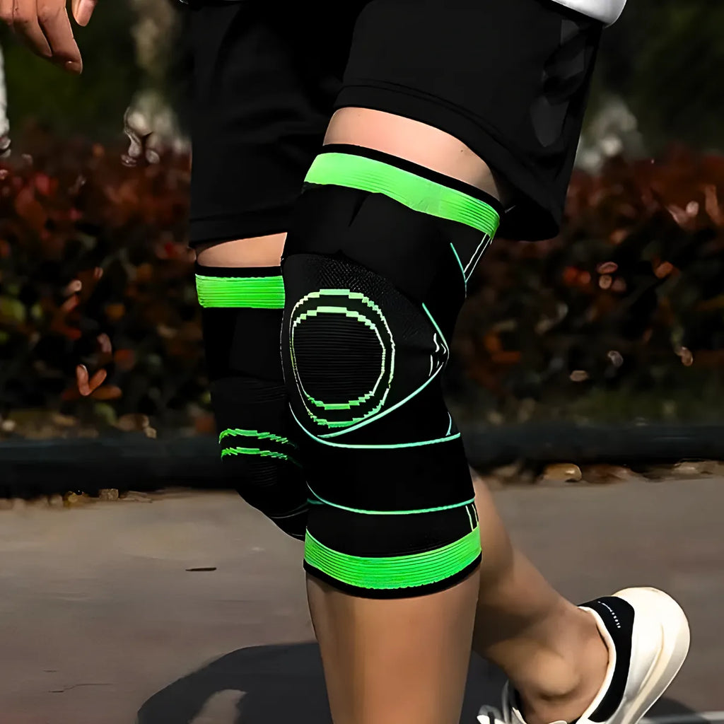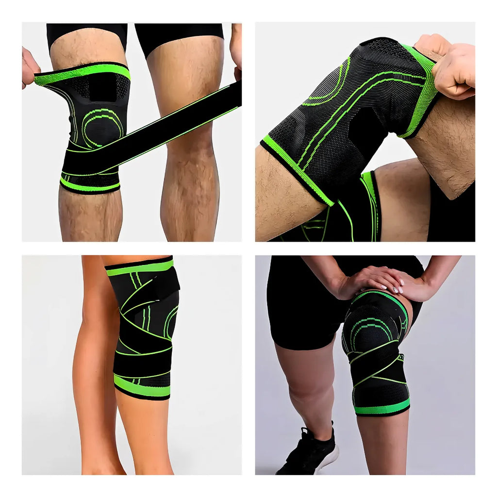 Compressão: Faixas de compressão ajustáveis para estabilização do joelho