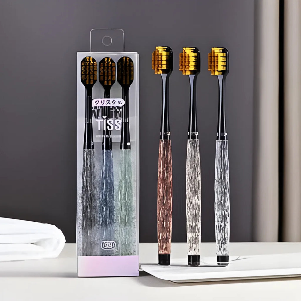 Kit 3 Escovas De Dente com Cabo De Cristal