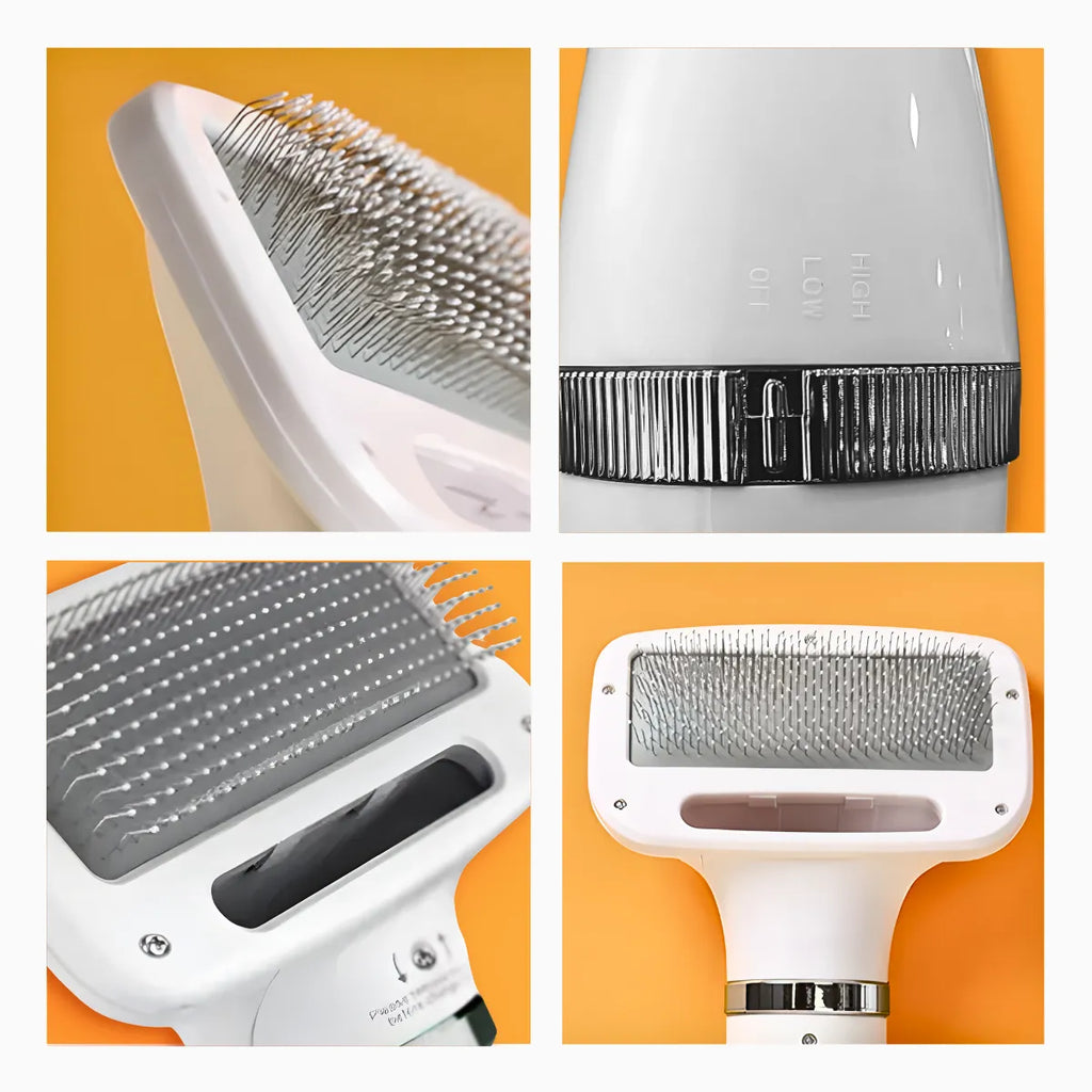 Combina as funções de secador de pelo e escova/pente, tornando o cuidado do pelo mais prático e conveniente para o seu pet.