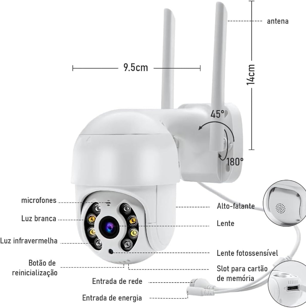 A Câmera Externa Inteligente Modelo A8 é a solução perfeita para quem busca segurança e conveniência com tecnologia avançada, garantindo a tranquilidade de monitoramento 24 horas por dia. Garanta já a sua e tenha controle total da sua segurança com a fácil instalação e alertas personalizados!